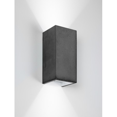 L'applique murale B8 est moulée dans un béton gris foncé. Elle combine une couleur argentée avec le béton brut dans une lampe au design intemporel et élégant.