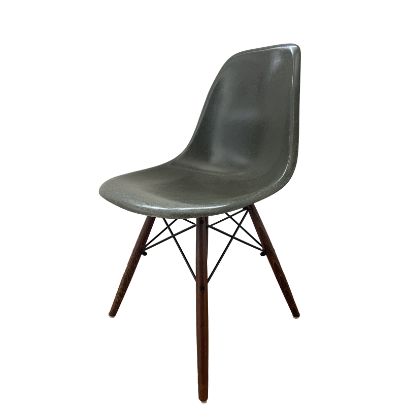 Chaise originale Eames DSW Green Forest vintage en fibre de verre.